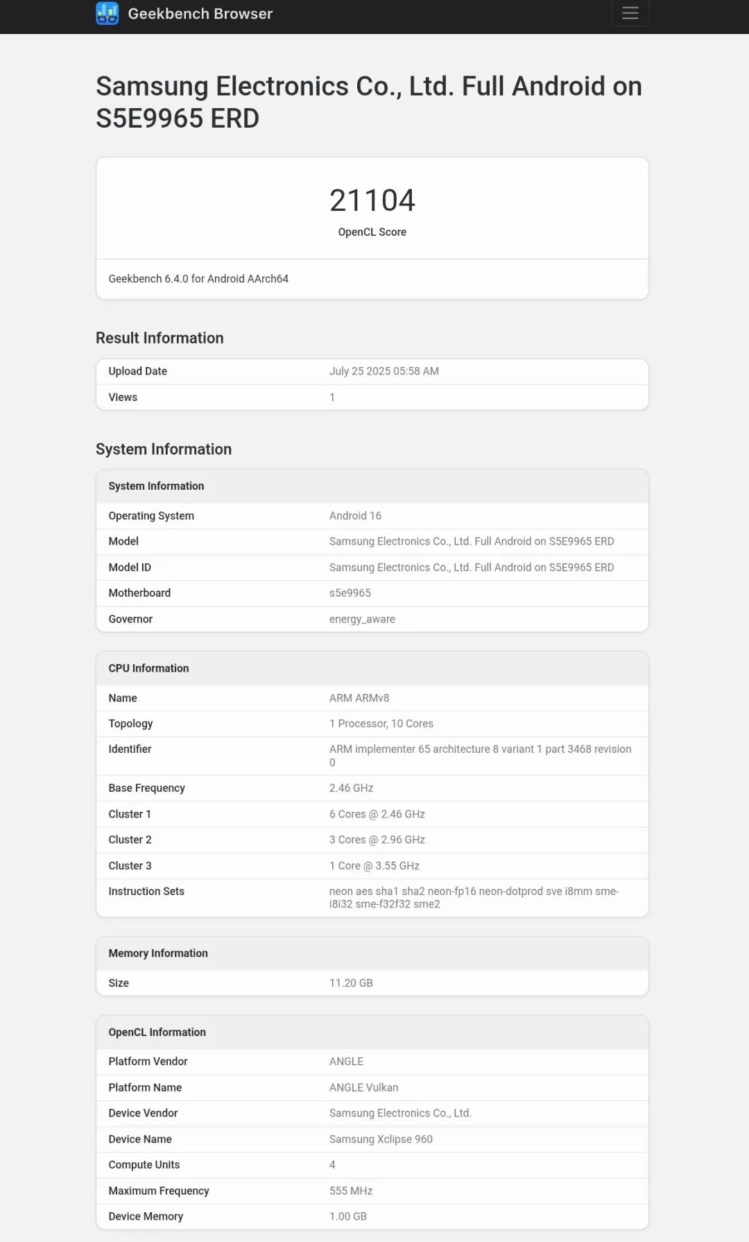 具体Geekbench GPU跑分为21104K线猎手,后续表现持续关注下~